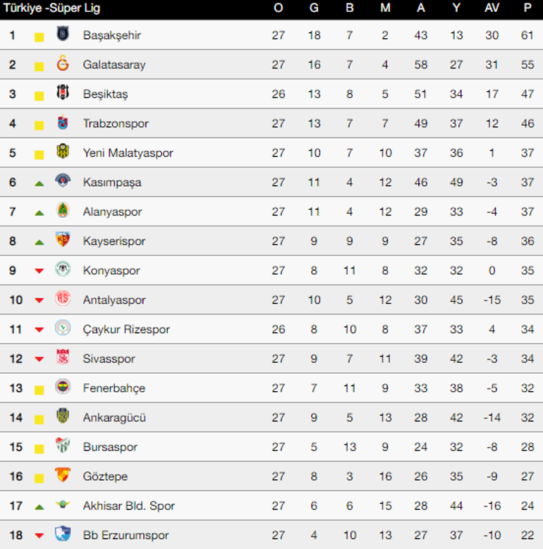Lig, amatör ligler gibi türkiye liglerinin 2020/2021 son lig sıralaması güncel geçmiş maç sonuçları ile takip edin. Türkiye süper lig maç sonuçları sayfasındasınız ve bu sayfadan türkiye süper lig 2020/2021 sezonu canlı skorları ve süper lig puan durumuna ulaşabilirsiniz. Biten maçların ardından son oluşan süper lig puan durumu sabah canlı skor sayfasında! Puan durumu sayfasında türkiye süper lig içinde yer alan takımların puan cetvelindeki sıralamasını, puanlarını, oynadıkları maç sayısını, attıkları ve yedikleri gollerin sayısını, averajlarını ve son beş. Süper lig puan durumu ve önceki sezonların süper lig puan durumlarını eurosport ayrıcalığıyla görüntüleyin.